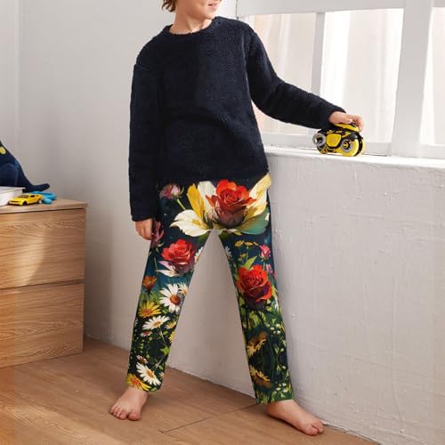 Pajama Pants Pajama Bottoms with Elastic Waistband Sleepwear Lounge Pants, Rose Sunflowers Starry Sky 2