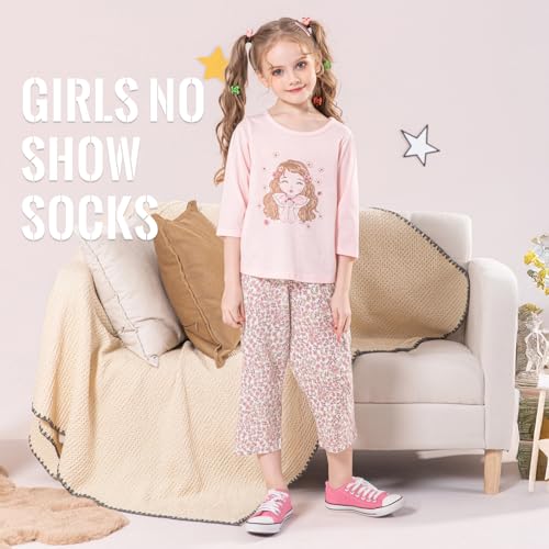 Comfoex 12 Pairs Girls No Show Socks Cotton Non Slip Mesh Low Cut Ankle Invisible Kids Socks With Grips 5