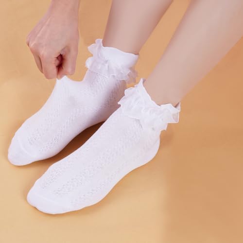 • White Girls Ruffle Socks Set: You will receive 3 pairs frilly socks for girls, enough to meet your little girl daily wear and replacement needs, making your kids look sweet and cute