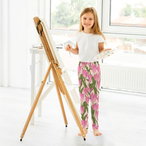 Girls Basic Leggings Baby Girls Pants Tulips Flowers Soft Footless Stretchy Tights Pants 4-10Y 3