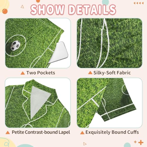 More information about ALAZA Football Field Green Grass Satin Pajamas Set Short Sleeve Button Down Sleepwear Summer Pjs 2 Piece