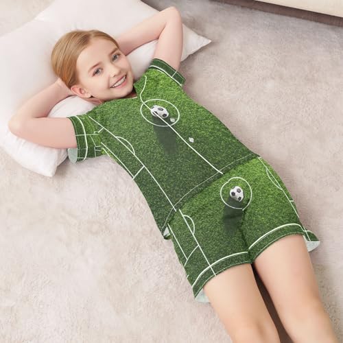 ALAZA Football Field Green Grass Satin Pajamas Set Short Sleeve Button Down Sleepwear Summer Pjs 2 Piece 1