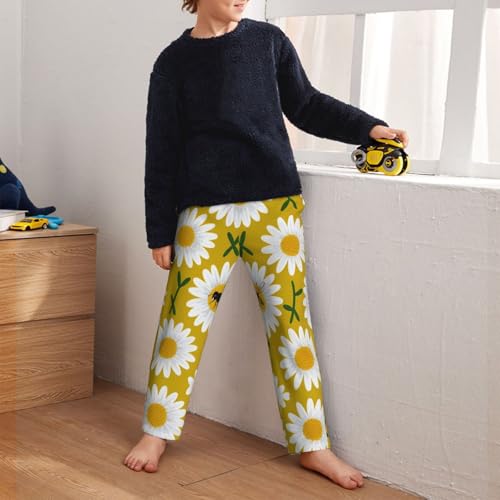 Pajama Pants Pajama Bottoms with Elastic Waistband Sleepwear Lounge PantsVintage Bee White Daisy Flowers 4
