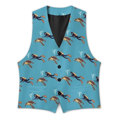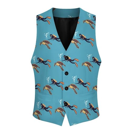 Dive Sea Turtle Suit Vest for Men Slim Fit Tuxedo Waistcoat Button Down V Neck Business Dress Coat 1