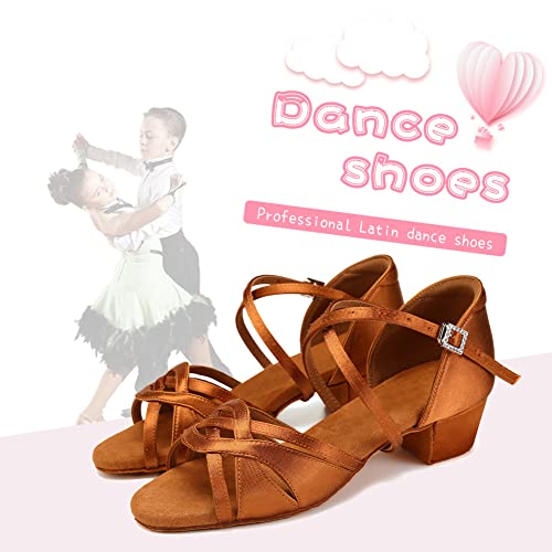 HIPPOSEUS Girls Latin Dance Shoes Silk Satin Ballroom Salsa Dance Practice Performance Shoes Suede Sole 5