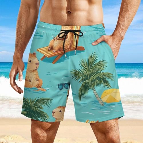 HOT ! Cute Capybaras Beach Men's Board Shorts Swimsuit Beach Pants Swimwear Bathing Suits
