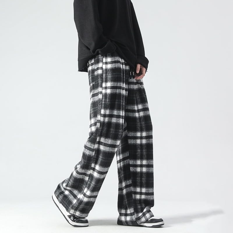 Men's Pants Fall Winter Thick Casual Plaid Wide-Leg Trouser for Men 1