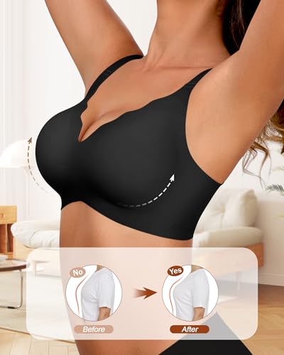 • 【"W" Jelly Strip Wireless Bra】Women's push up bras feature the "W" Jelly Strip that offers 360° support and coverage, creating a naturally full and lifted bust without the discomfort associated with traditional underwire bras