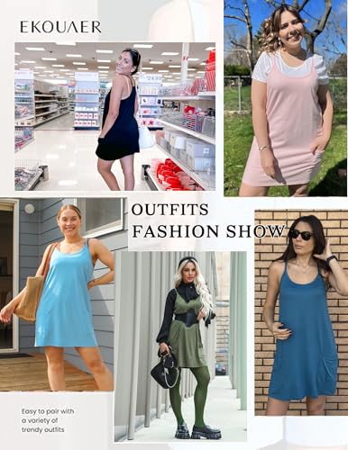 HOT ! Ekouaer Nightgowns for Women Cotton Sleepwear Adjustable Spaghetti Strap Sleepshirt Racerback Sleep Dress with Pockets S-3XL