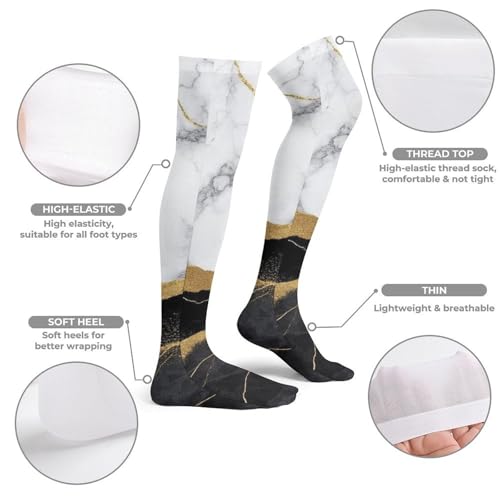 • HIGH ELASTICITY SOCKS: Length: 23.6 inches, Width: 3.3 inches. Fit most adult (including big children) foot sizes. Elastic rubber bands are used in the welt and foot arch to make sure the socks stay up-compressed in shape, comfortably attached to your calf without any sense of restraint and do not slip off the feet. Allowing you to get rid of loose and easy slip-off socks when walking