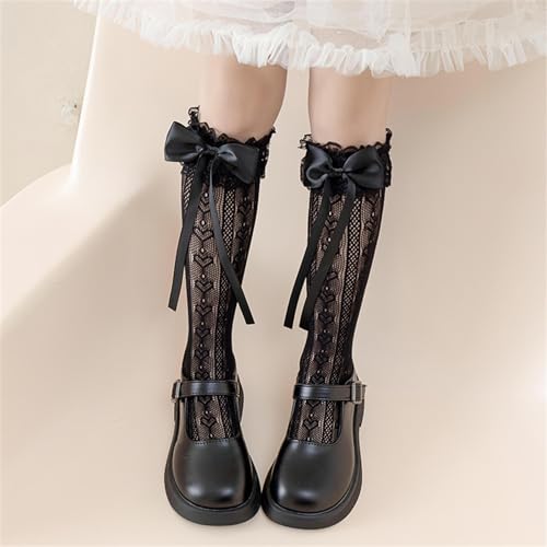 Girls Stockings Bowknot Ribbon Sweet Thigh High Stockings Socks for Little Girl Student Ruffle Knee Socks 4