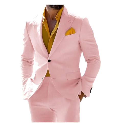 Suits for Men 2 Piece Linen Suit Slim Fit for Men Wedding Prom Set Formal Business Casual 2