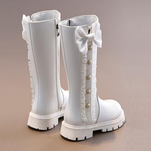 Girl Side Zip Up High Boot Lace Bowknot Cute Preppy Style Kids Shoes Lug Chunky Bottom Waterproof Leather Riding Boot 6