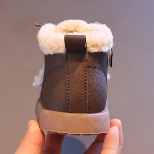 Baby Toddler Work Fleece Lined Boots Leather Lace-Up Soft Flat Ankle Snow Boots Kids Rubber Sole Slip Prewalker Boots 7
