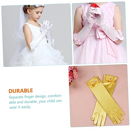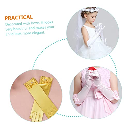 6pairs Flower Girl Satin Gloves Bow for Boy Girl Elegant Dress Accessories for Weddings Parties and Comfortable and 3