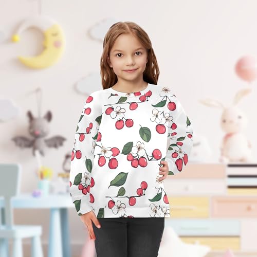 HOT ! JUNZAN Art Serviceberry Fruit White Big Girls Hoodie Sweatshirt Crewneck Sweatshirt With Hoodie Sports 4T