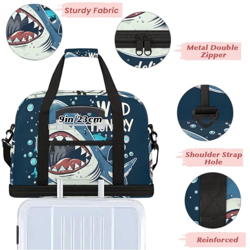 HOT ! Large Weekender Overnight Bags Animal Cartoon Shark Cute Travel Duffel Bag for Women Men Gym Bag With Shoe Compartment Foldie Travel Tote Bag Carry On Personal Item Bag for Travel Gym Sports