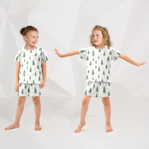 Pajama Short Sets Winter Trees Snow Pattern Soft Cotton Summer Sleepwear 2 Piece PJS Size 5-14T 3