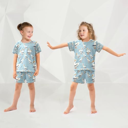 Pajama Sets Short Sleeve White Pelican Pattern Soft Cotton Summer Sleepwear 2 Piece PJS Size 5-14T 6