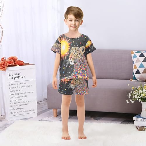 ALAZA Sun Leopard Polka Dot Pajamas Set Short Sleeve Cotton Sleepwear Summer Pjs 2 Piece 5-14Y 6