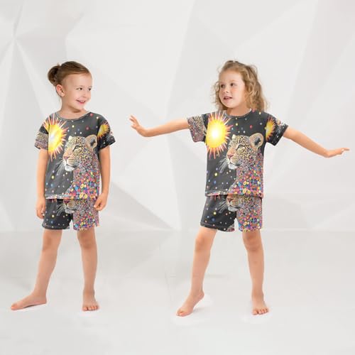 ALAZA Sun Leopard Polka Dot Pajamas Set Short Sleeve Cotton Sleepwear Summer Pjs 2 Piece 5-14Y 2