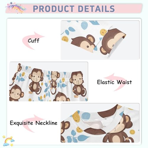 Pigsaly Pajama Set 2 Piece Leaves Cute Brown Monkey Pajama Sets Long Sleeve Pjs Sleepwear 6Y 5