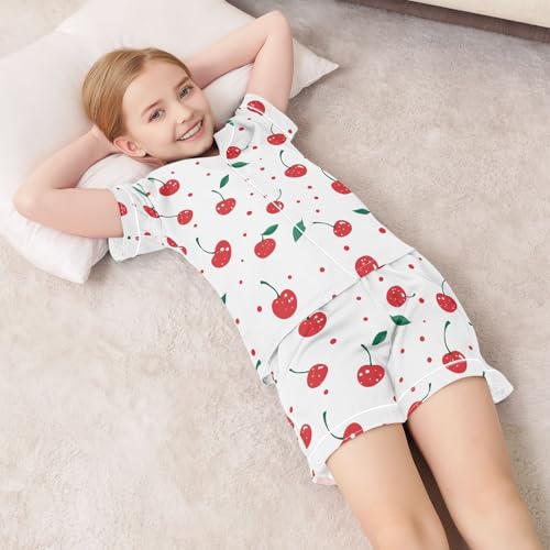 More information about Cute Cherry Red Dots Pajamas Set Summer Button Down Sleepwear Pjs Sets Comfy Loungewear