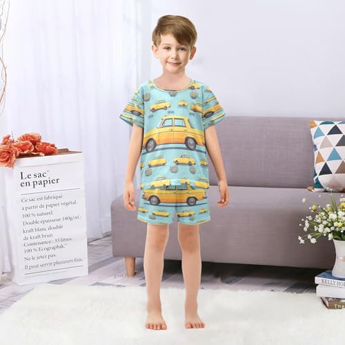Pajama Sets Short Sleeve Cartoon Yellow Taxi Car Soft Cotton Summer Sleepwear 2 Piece PJS Size 5-14T 1