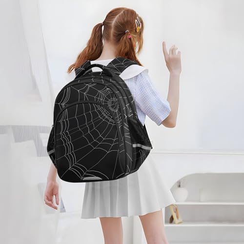 Spiders Cobweb Halloween Backpack for School Book Bag Tablet Laptop Backpack Work Travel Bag with Reflective Stripes 6