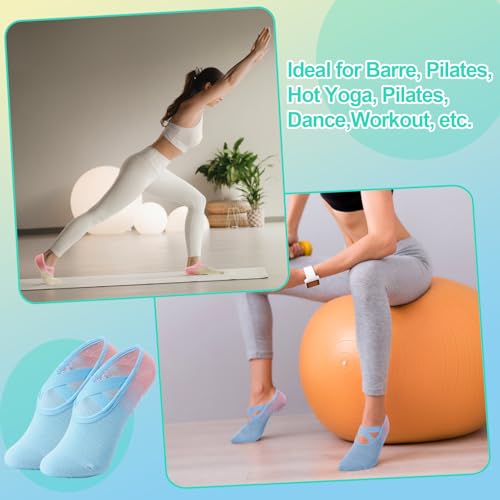 Jspupifip Pilates Socks with Grips for Women X-Cross Straps Non Skid Yoga Socks Anti Slip Barre Pilates Hospital Grippy Socks 7