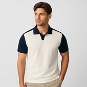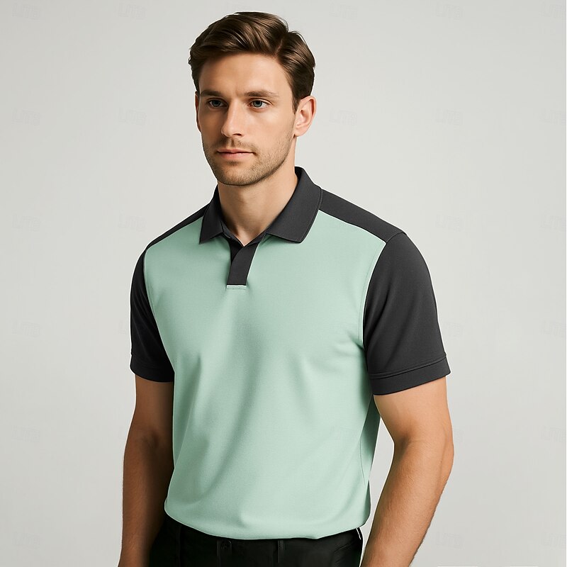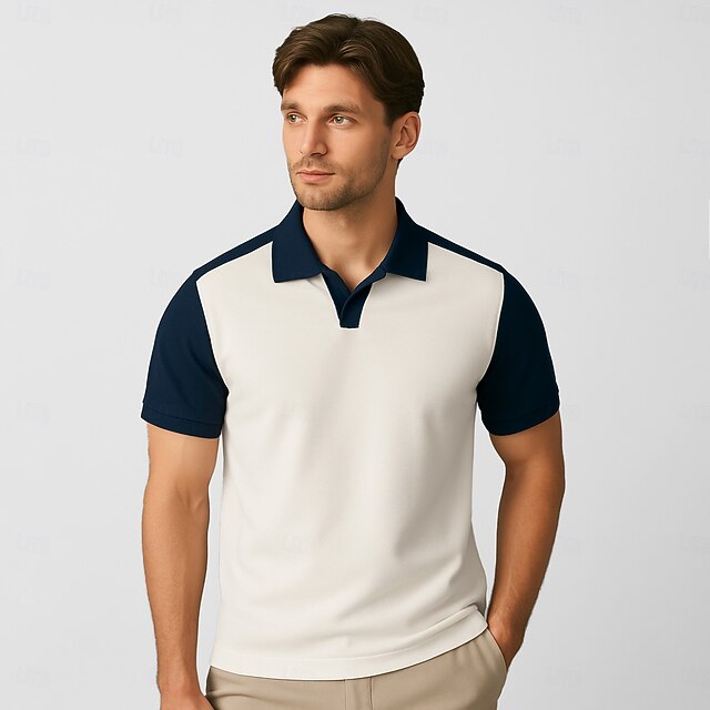 More information about Men's 100% Cotton Polo Work Street Seagull collar Short Sleeve Vacation Vintage Solid Color Color Block Patchwork Color Block Summer Spring White Mint Green Polo