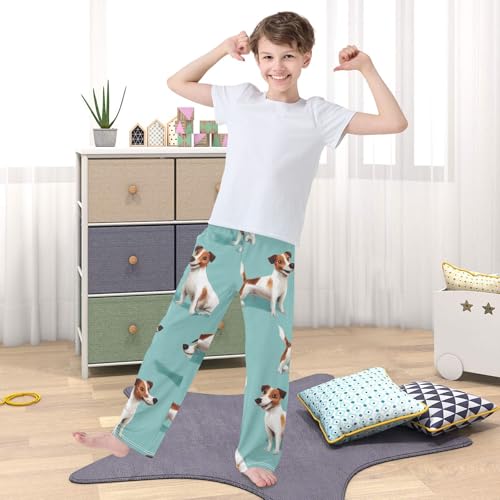 HOT ! Lovely Jack Russell Dog Boys Long Pants Soft Trousers Elastic Waist Kids Lounge Bottoms with Pockets S-XL