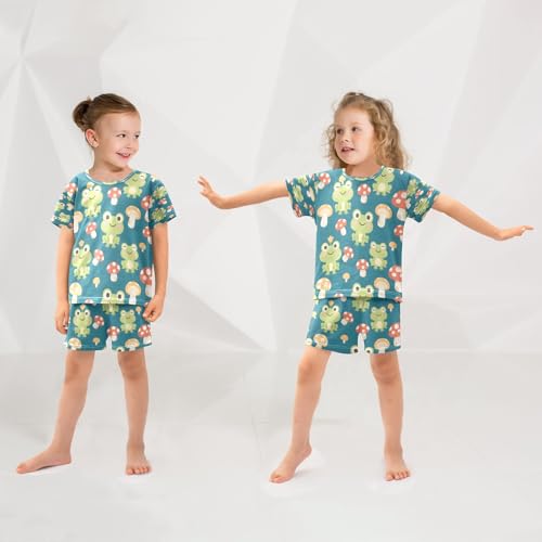 Frog Pattern Kids Pjs Set Boys Girls Summer Short-Sleeve Sleepwear Pajamas 2PCS 4