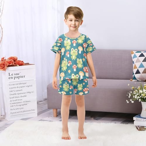 Frog Pattern Kids Pjs Set Boys Girls Summer Short-Sleeve Sleepwear Pajamas 2PCS 5