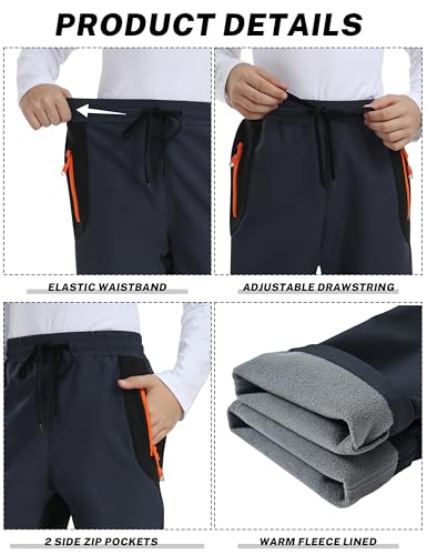 • Features: Kids fleece lined hiking pants are of solid color with irregular color patchwork on the body. Kids boys waterproof ski snow pants adopt elastic waistband, full of stretch for a comfortable fit, easy to pull on and off. Girls fleece hiking snow ski pants with double side zip pockets for keeping your personal belongings safe. Waterproof and windproof soft shell outer, fleece lined inner for extra insulation, super thick, comfortable but not bulky, so easy for kids to move around in.