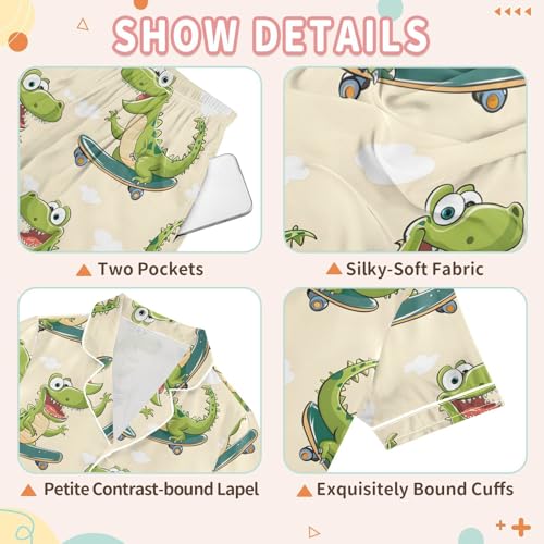 ALAZA Cartoon Crocodile Cloud Satin Pajamas Set Short Sleeve Button Down Sleepwear Summer Pjs 2 Piece 6