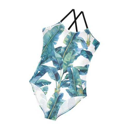 KLL Tropical Banana Leaf Girls 1-Piecing Swim Suit Beach Swimming Suits Adjustable Shoulder Strap Quick-Dry 6