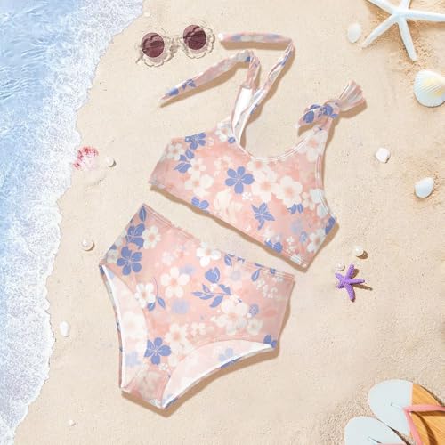 KLL Floral Lace Girls Two Piece Bikini Sets Scoop Neck Swimsuits Swimming Suits Adjustable Shoulder Strap 2