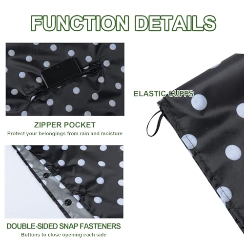• [Adjustable Rain Poncho with Hood & Wrist Straps]: This adult rain poncho features elastic wrist straps with finger loops to secure sleeves during movement, plus snap-button adjustable sides for a customized fit. The rain coat's dual-spring buckle hood (adjustable on both sides) stays snug in wind, while the zippered side pocket keeps essentials safe and dry