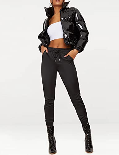 Uaneo Women's Cropped Puffer Jacket Winter Shiny Zip Up Short Bubble Puffy Coats 6