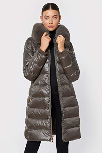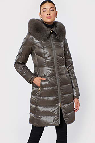 More information about 1 Madison Women's Long Winter Coat with Fox Fur Trimmed Hood, Taupe, Medium