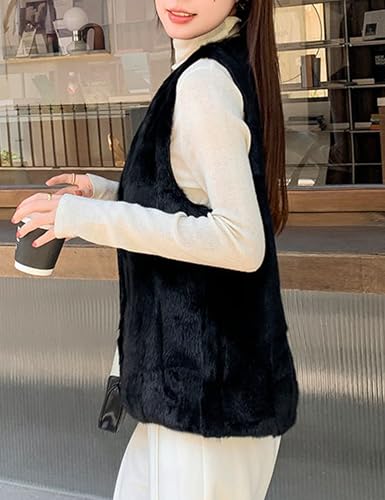 Women's Genuine Mink Fur Vest Black Warm Winter Real Fur Sleeveless Coat 4