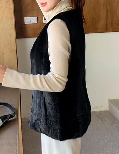 Women's Genuine Mink Fur Vest Black Warm Winter Real Fur Sleeveless Coat 5