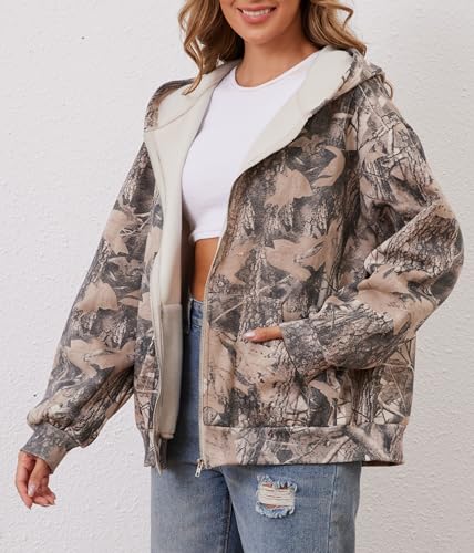More information about Women Camo Hoodie Oversized Fleece Full Zip Up Sweatshirt Casual Long Sleeve Jackets Trendy Fall Clothes With Pockets