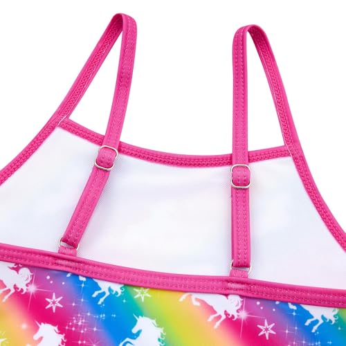 • Material: Girls' rash guard sets are made of Nylon and Spandex, which is flexible, skin-friendly, lightweight, quick-drying and breathable. Cute and adorable patterns is durable and no fade.