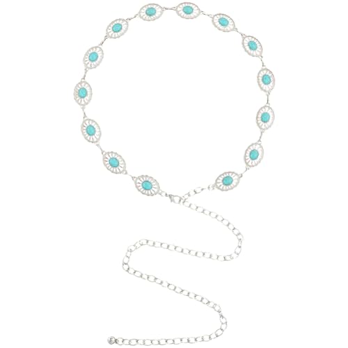 Turquoise Waist Chain Western Cowgirl Metal Silver Sparkly Adjustable Summer Belly Chain Link Belts Fashion Sexy Belt Jewelry Accessories for Women Dress Wedding Bridal Party Birthday Club 1