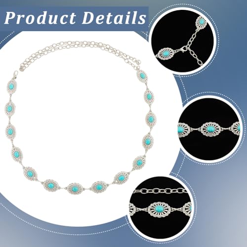 Turquoise Waist Chain Western Cowgirl Metal Silver Sparkly Adjustable Summer Belly Chain Link Belts Fashion Sexy Belt Jewelry Accessories for Women Dress Wedding Bridal Party Birthday Club 4