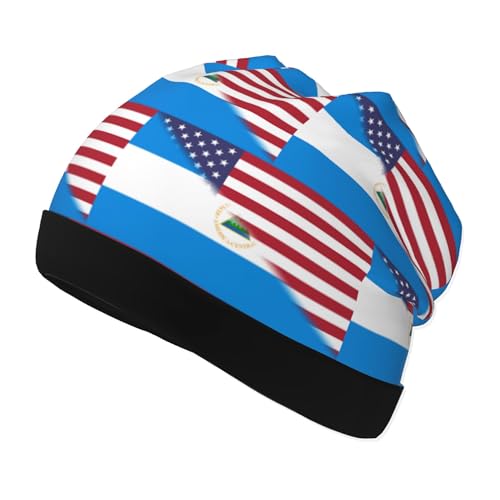 American Flag and Flag of Nicaragua Kids Leisure Elastic Knitted Hat Junior Large Size Knit Cap Child Beanie Black 1