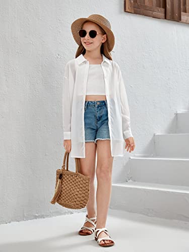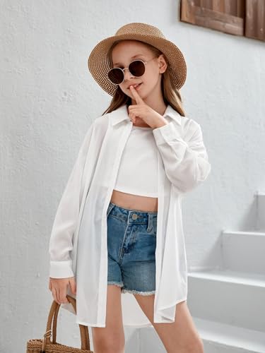 • Features: Long sleeve, collar neck, drop shoulder, button front, semi-sheer, long length, plain color, oversized, loose fit, girls summer cover ups