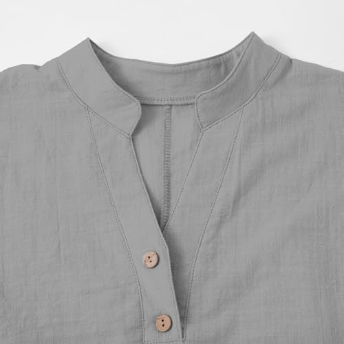 Summer Tops for Girls 2025 Trendy Dressy Casual Blouse Button Up Short Sleeve Shirts Linen Henley V Neck T Shirt Tunic Top 5